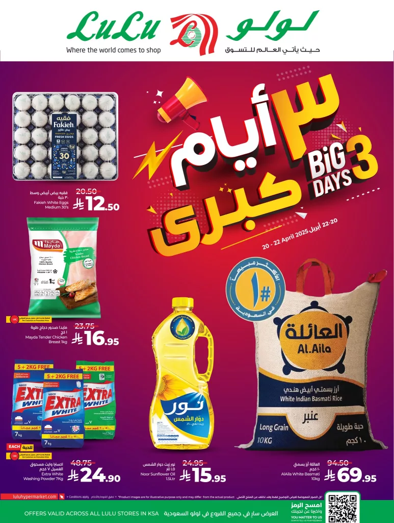 ما يميز عروض لولو السعودية هذا الاسبوع هو التنوع الكبير في المنتجات والتخفيضات التي تصل إلى أكثر من 40٪ على بعض السلع اليومية مثل البيض والزيوت والأرز بالإضافة إلى تشكيلات رائعة من الفواكه الموسمية المستوردة والخضروات الطازجة كما تم تقديم خصومات مذهلة على منتجات النظافة الشخصية