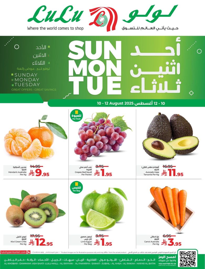 عروض لولو المنطقة الشرقية الاحد 10 اغسطس 2025 تقدم تشكيلة مميزة من أجود أنواع الخضروات والفواكه الطازجة من اليوسفي الأسترالي والعنب الأحمر السعودي الطازج كما تشمل اللحوم الطازجة المختارة بعناية من مصادر محلية وعالمية حيث تتوفر قطع لحم الضأن الكيني والتنزاني ولحم العجل الهندي وقطع لحم البقر المحلي