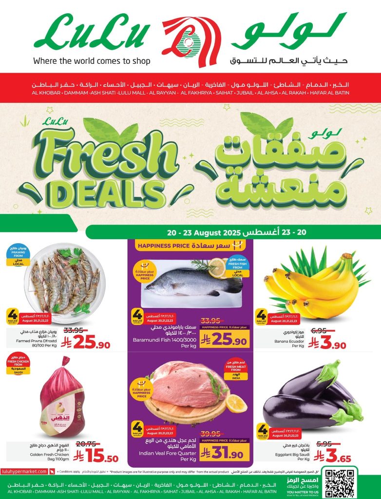 عروض لولو المنطقة الشرقية الأربعاء 20 اغسطس 2025 تأتيكم بتشكيلة واسعة من اللحوم الطازجة المتنوعة حيث تجدون أفضل اختيارات الغنم الأسترالي والباكستاني والنعيمي بالإضافة إلى لحوم الأبقار المحلية والمستوردة و تمتد لتشمل أجود أنواع الخضروات والفواكه الطازجة القادمة من مختلف دول العالم مثل الموز والفراولة والرمان والجوافة