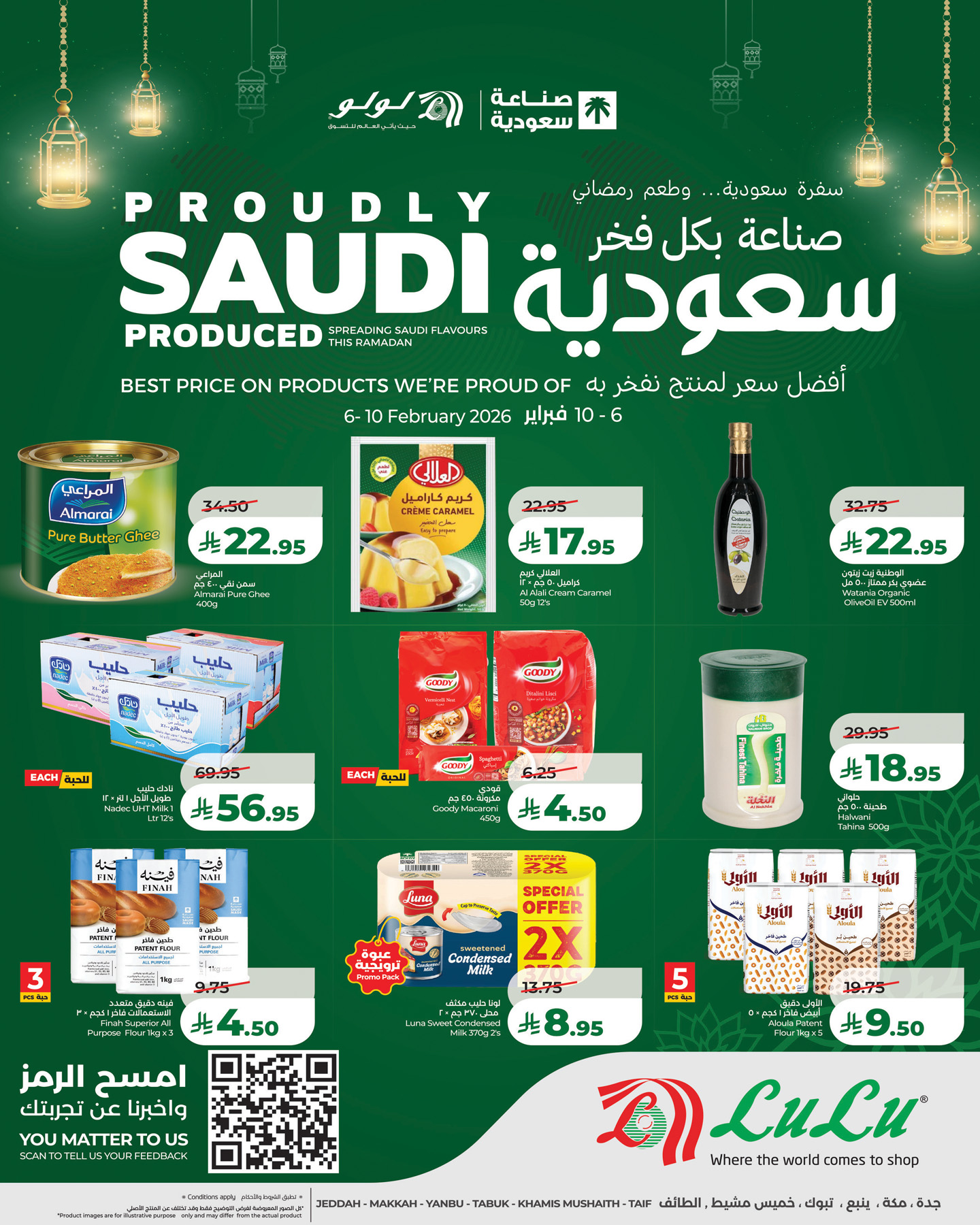 عروض لولو جدة و تبوك على منتجات صناعة سعودية من 6 إلى 10 فبراير 2026 توفير رمضان نقدم لكم افضل العروض المميزه في اسواق لولو فروع جدة، مكة، تبوك، ينبع، خميس مشيط والطائف فقط و بأفضل الاسعار التي سوف تشاهدها مع عروض رمضان