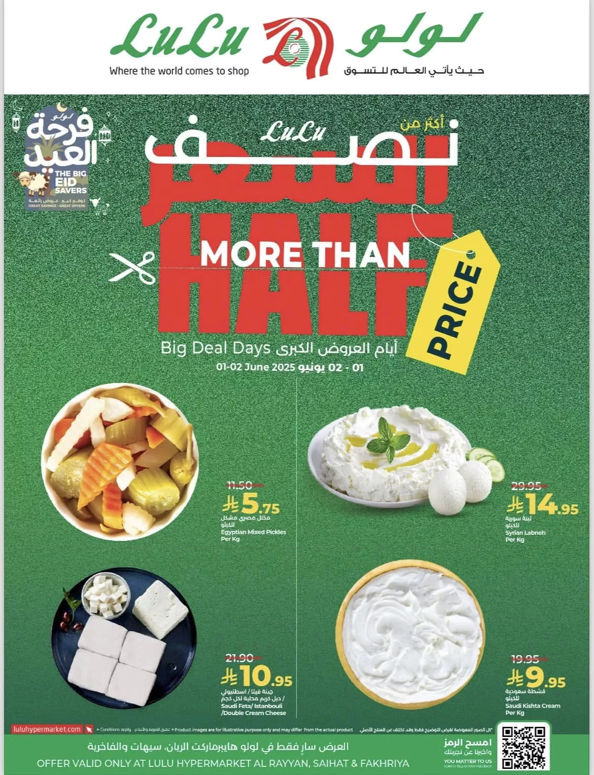 تشهد المملكة العربية السعودية العديد من الحملات الترويجية المغرية خلال موسم العيد، وتأتي عروض لولو هايبر ماركت في سيهات والفاخرية والريان كواحدة من أقوى هذه الحملات تحت شعار “أكثر من نصف السعر”. خلال يومي 1 و2 يونيو 2025 فقط، سيتمكن المتسوقون من الاستفادة من تخفيضات ضخمة على مجموعة واسعة من المنتجات الغذائية الأساسية والمميز