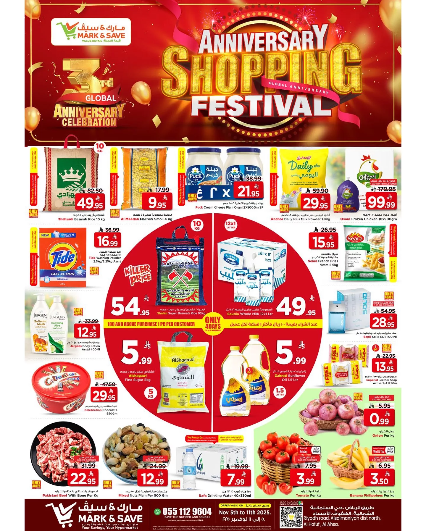 عروض مارك اند سيف الأحساء الأسبوعية الأربعاء 5/11/2025 تحتوي على الأجهزة المنزلية مثل المكانس الكهربائية وموازين المطبخ وأفران الطهي الصغيرة ومضارب الخلط و بتوفر كمان منتجات غذائية تشمل التمور والعسل الطبيعي والفواكه الطازجة والخضروات والمخبوزات والفواكه المجففة والمكسرات والعصائر باقل الاسعار