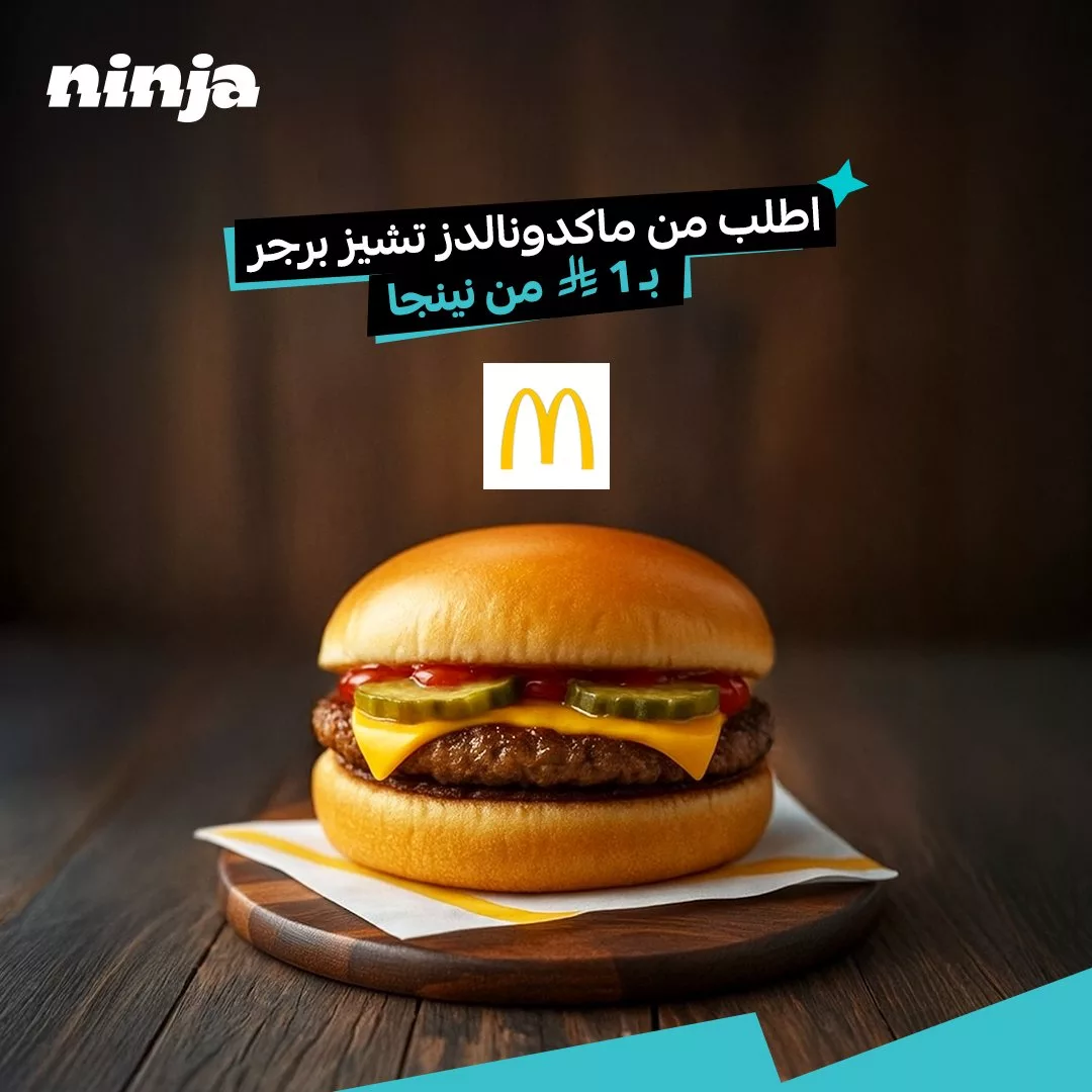 - اطلب الان من ماكدونالدز عبر تطبيق نينجا تيشز برجر بسعر 1 ريال بس