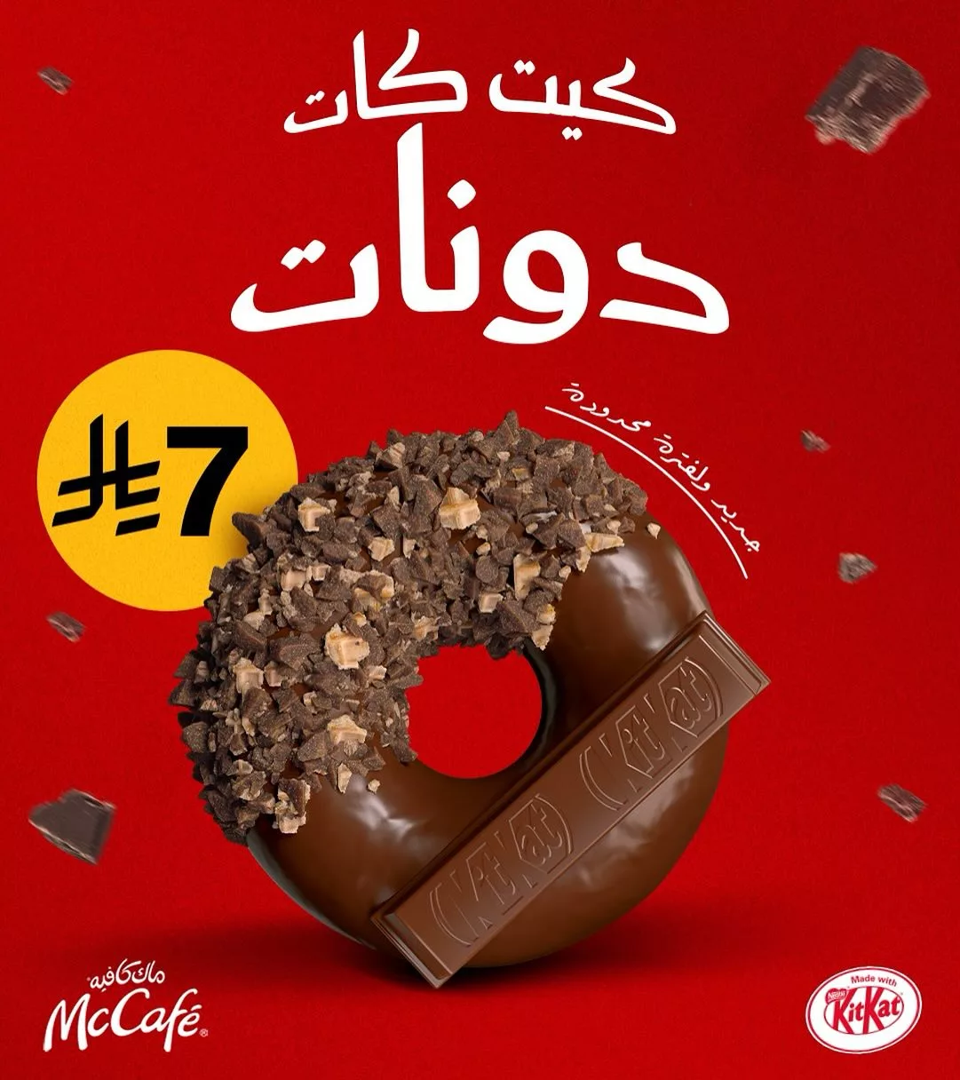 استفيد من العرض الجديد و لفتره محدوده فقط من عروض ماك كافيه السعودية و سعر القطعه 7 ريال فقط دونات مغطاة بشوكلا كيت كات الشهية استفيدوا من العرض قبل فوات الاوان.