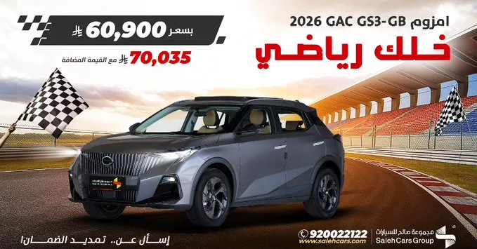 عروض مجموعة صالح على سيارة جي ايه سي GS3 امزوم GB 2026 احصل على سيارة مميزه بأفضل الاسعار عملية وفاخرة في نفس الوقت