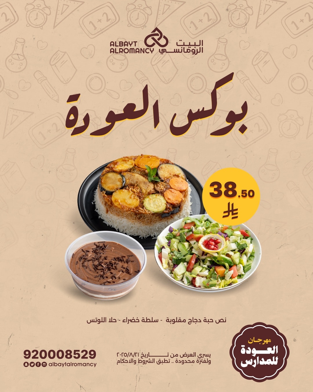 عروض حصرية من مطاعم البيت الرومانسي – بوكس العودة للمدارس بسعر مغري