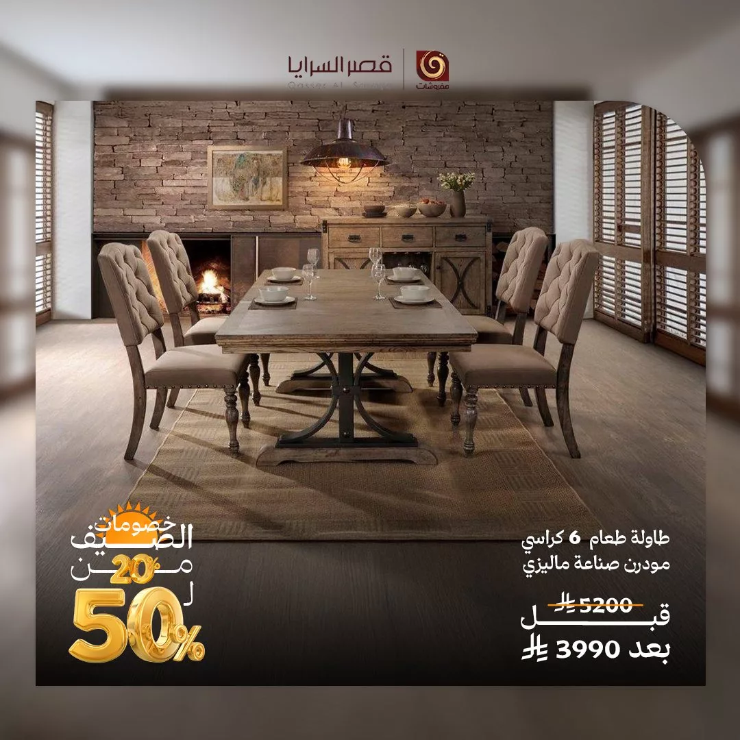 في ظل إقبال العائلات السعودية على تجديد أثاث منازلهم خلال موسم الصيف، تقدم مفروشات قصر السرايا عروضاً صيفية لا تُفوّت تشمل تشكيلة مختارة من أطقم الكنب، غرف النوم، وطاولات الطعام بخصومات مذهلة تصل حتى 50٪ مما يجعلها فرصة مثالية لمن يرغب في تجديد ديكور منزله بأجمل التصاميم الحديثة والأسعار التنافسية