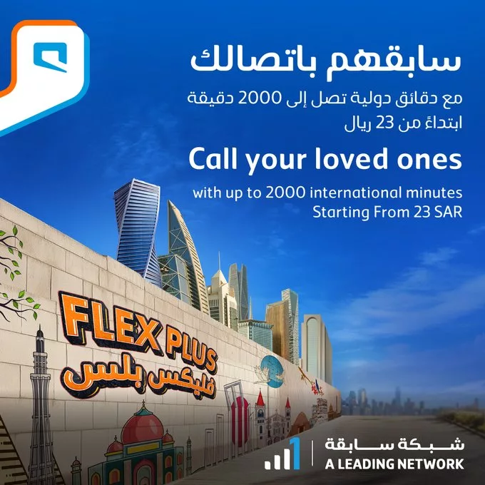 - حتى 2000 دقيقة دولية ومحلية تمكنك من البقاء على تواصل دائم مع من تحب داخل السعودية أو خارجها