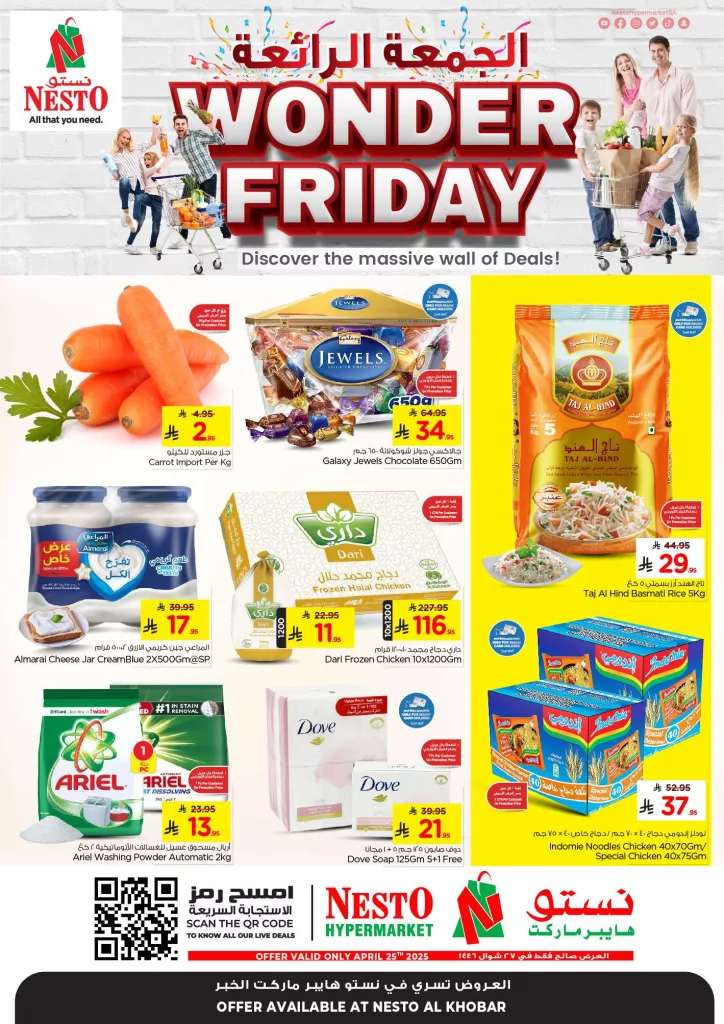 عروض نستو الدمام الخميس 24 ابريل 2025 تقدم تشكيلة واسعة من المنتجات الغذائية اليومية التي تلبي احتياجات العائلة بأفضل جودة منها الخضروات الطازجة مثل الجزر المستورد والمنتجات المجمدة مثل دجاج داري الحلال كما تتضمن العروض أصنافًا متنوعة من الشوكولاتة الفاخرة والأرز البسمتي طويل الحبة