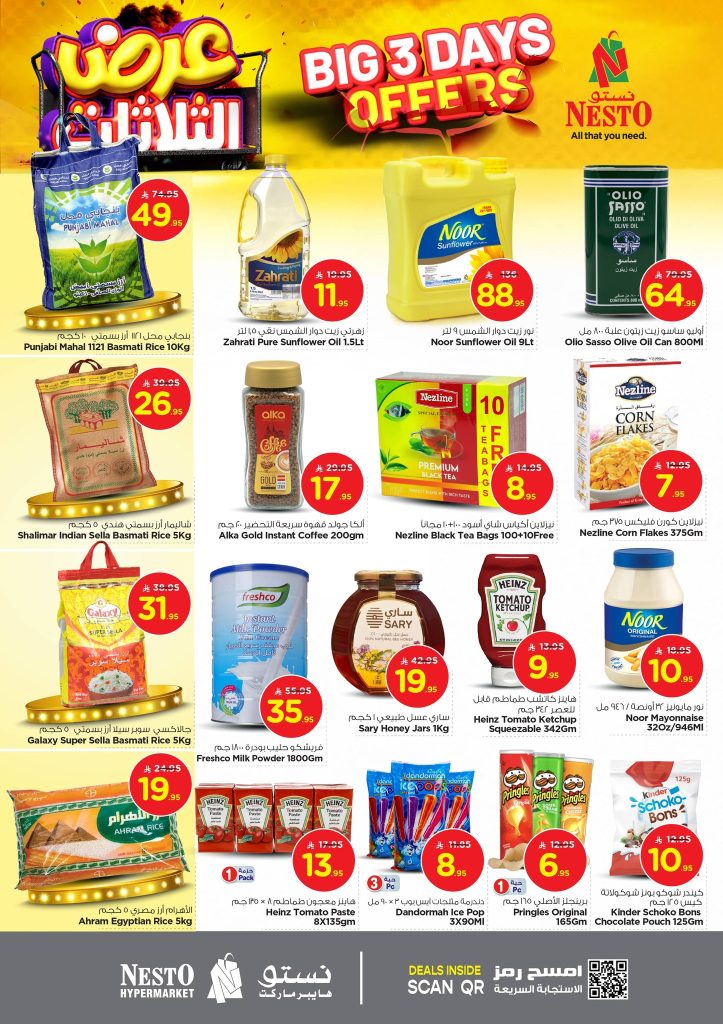 عروض نستو الرياض الأحد 3 أغسطس 2025 تشمل تشكيلة واسعة من السلع التموينية الأساسية حيث تجد الأرز البسمتي بأنواعه وزيوت الطهي المختلفة مثل دوار الشمس والزيتون إضافة إلى القهوة والشاي و تشمل أيضا مستلزمات العناية الشخصية والمنزلية مثل كريمات الشعر والبشرة والصابون المعطر ومعطرات الأقمشة