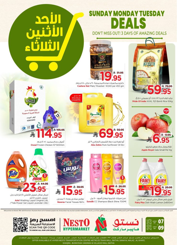 عروض نستو الرياض ليوم الأحد 7 سبتمبر 2025 تشمل تخفيضات حصرية على السلع الأساسية حيث تشمل منتجات الأرز والزيوت والمكسرات إضافة إلى الفواكه الطازجة واللحوم المجمدة و تميزت أيضا بخصومات قوية على منتجات التنظيف والعناية الشخصية وكذلك منتجات الألبان والأجبان والمخبوزات باقل الاسعار
