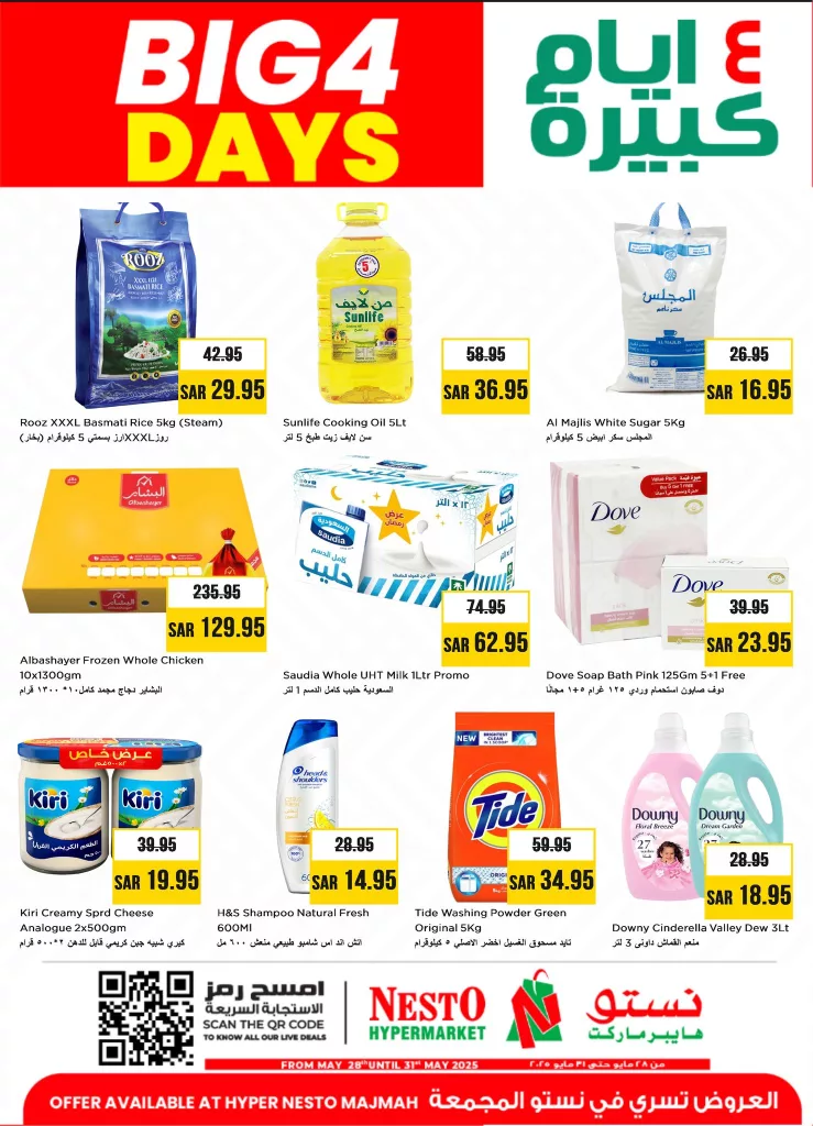 عروض نستو القصيم الأربعاء 28 مايو 2025 تقدم تشكيلة مميزة من المنتجات الغذائية الأساسية التي لا غنى عنها لكل بيت من الأرز البسمتي الفاخر وزيت الطبخ والسكر الأبيض إلى الدجاج المجمد والحليب طويل الأجل مما يجعلها فرصة مثالية للتوفير الذكي عند شراء كميات كبيرة للاستخدام المنزلي اليومي
