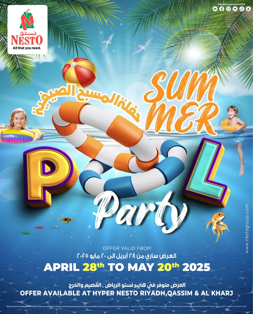 عروض نستو لحفلة المسبح الصيفية – الرياض، القصيم، الخرج | من 28 أبريل حتى 20 مايو 2025