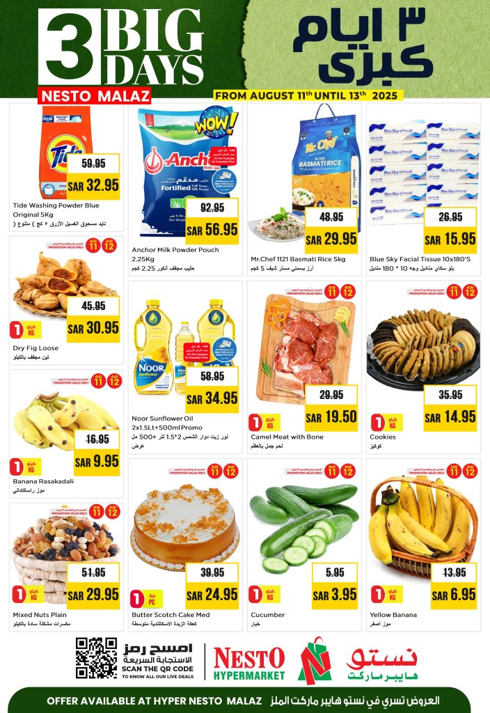 يسري العرض لمدة ثلاثة أيام فقط، ابتداءً من 11 أغسطس وحتى 13 أغسطس 2025 في فرع نستو هايبر ماركت الملز