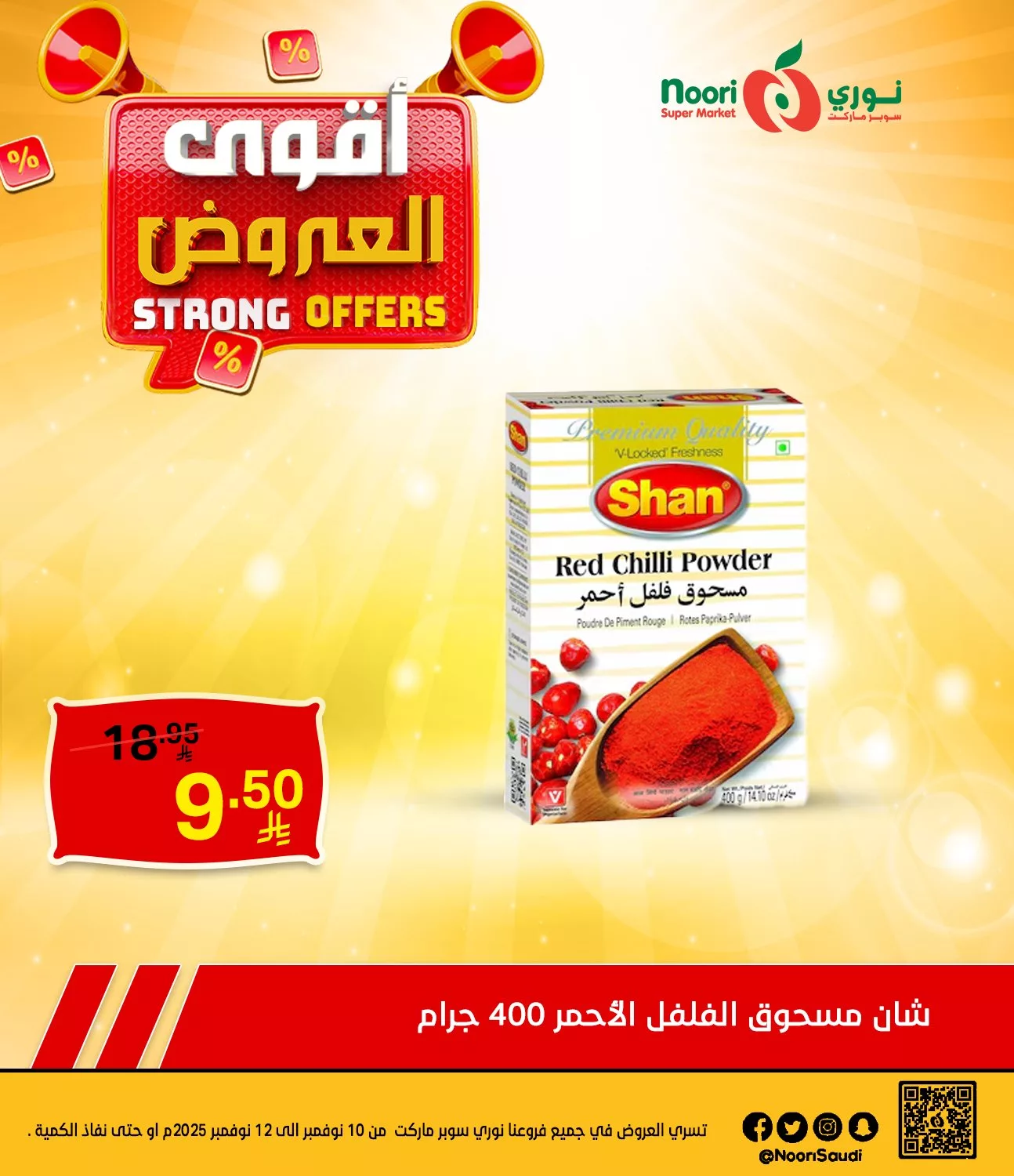 نستعرض معكم احدث عروض نوري هايبر ماركت ليوم الاثنين 19 جماد الاول 1447هـ و تحتوي علي المشروبات الغازية بنكهات ومنتجات الألبان مثل جبنة داري القابلة للدهن و بتوفر كمان الاسبوع ده عبوات السكر الفاخر الناعم والخشن ومسحوق الغسيل سيرف المنعش بالإضافة إلى مسحوق الفلفل الأحمر ومسحوق الكاري من شان