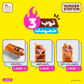 عرض هنقرستيشن بالتعاون مع فروج أبو العبد الذي يقدم خصومات استثنائية على مجموعة من أفضل السندويشات والوجبات السريعة وذلك ضمن عرض توب 3 الذي تم العرض عليه حديثا لا تفوتوا افضل عروض التوفير و استفيدوا من اقوى العروض و اشهى الوجبات